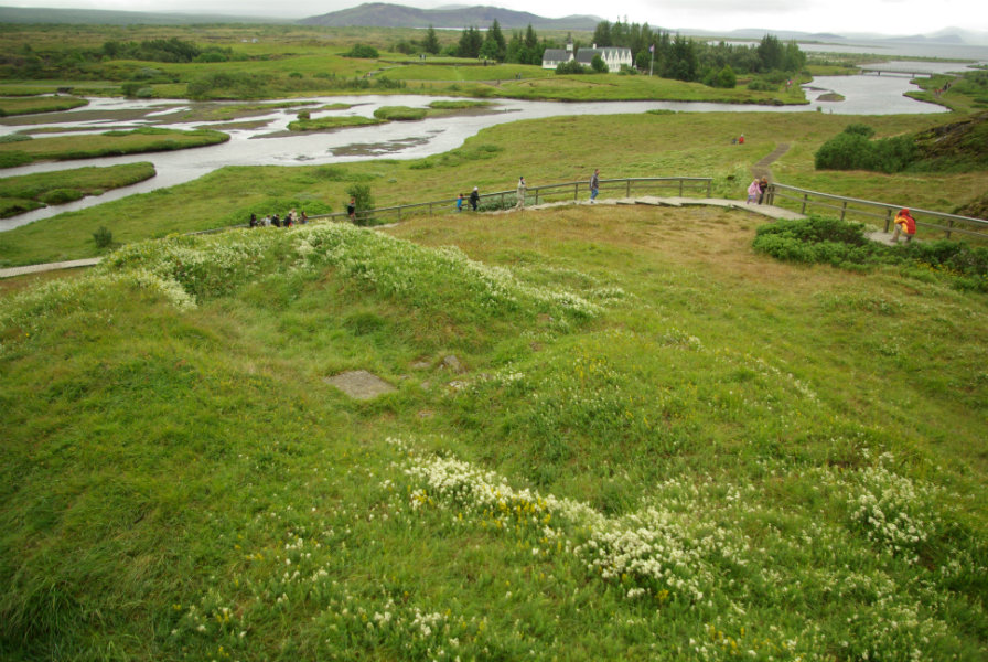 The precise location of the law rock and law council is unclear. 13th century documents place the Lögberg somewhere on the eastern edge of Almannagjá, with the Lögrétta possibly in the field in front of it, either north or east of the river – Öxará. Place names, such as Drowning Pool and Gallows Rock can also shed light on some of the grimmer aspects of the proceedings.