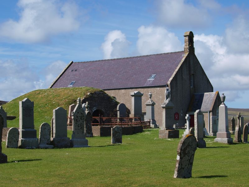 As well as being the site of Shetland’s parliament, Tingwall was also the base of the Archdeacon of Shetland. The present church was built in 1788, but there is believed to have been a church on the site since the 12th century. The burial vault in the churchyard is thought to have belonged to this earlier church.