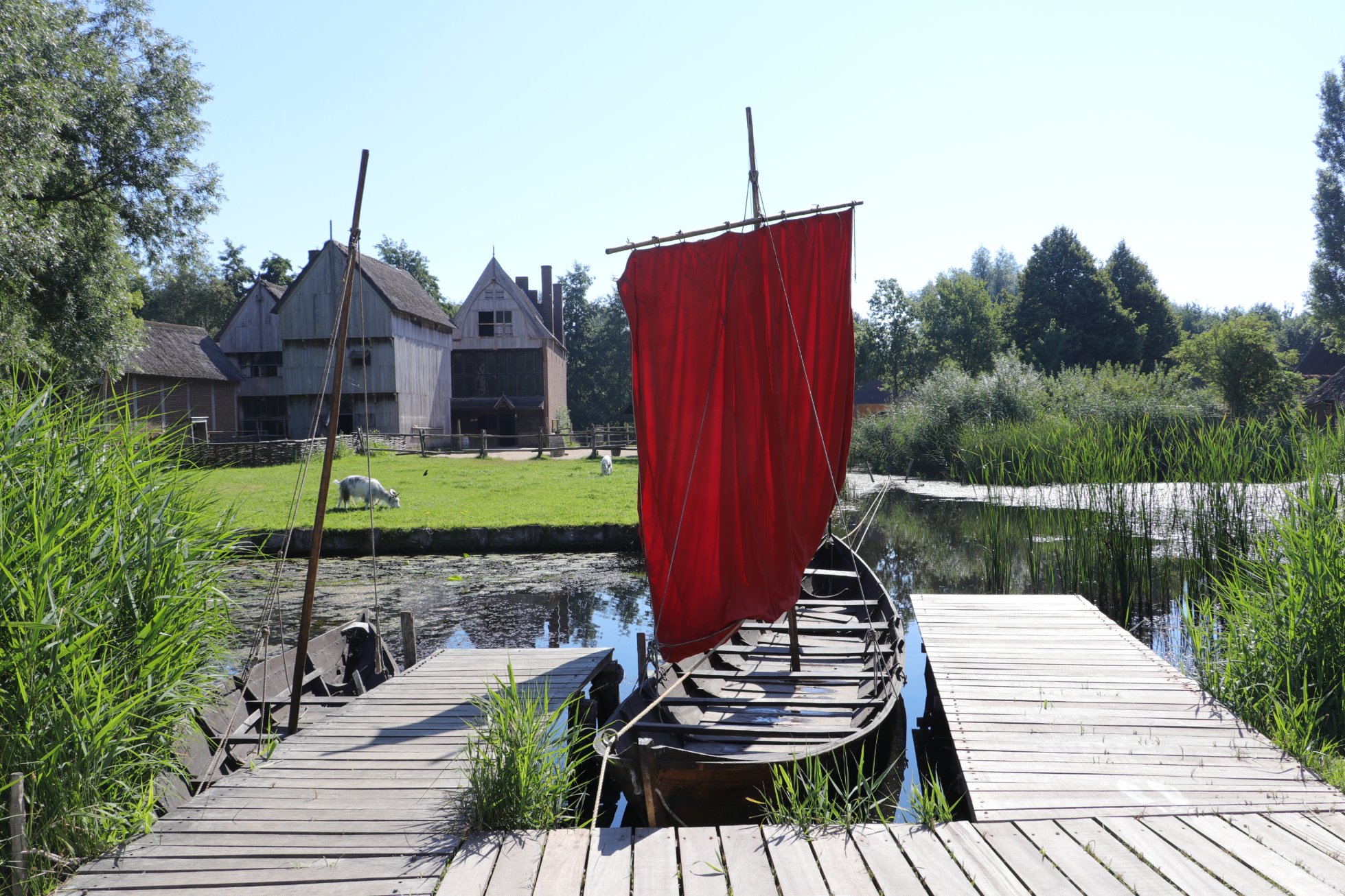 In Dorestad, in Archeon, there is a small group of three buildings, like the one in Dorestad around 800 AD. stood.